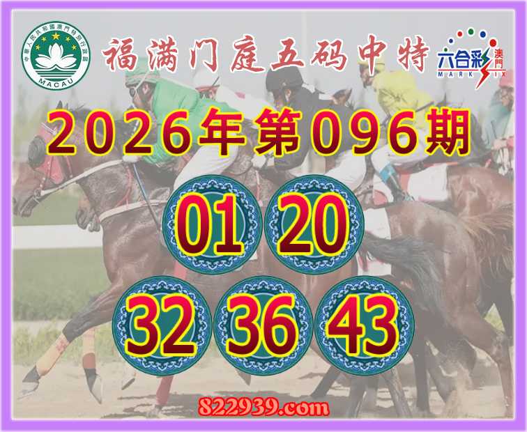 096期:【福满门庭】 🥧五码中特🥧【01.20.32.36.43】开:43