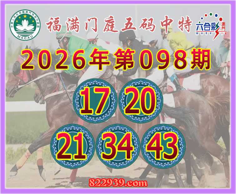 098期:【福满门庭】 🥧五码中特🥧【17.20.21.34.43】开:17