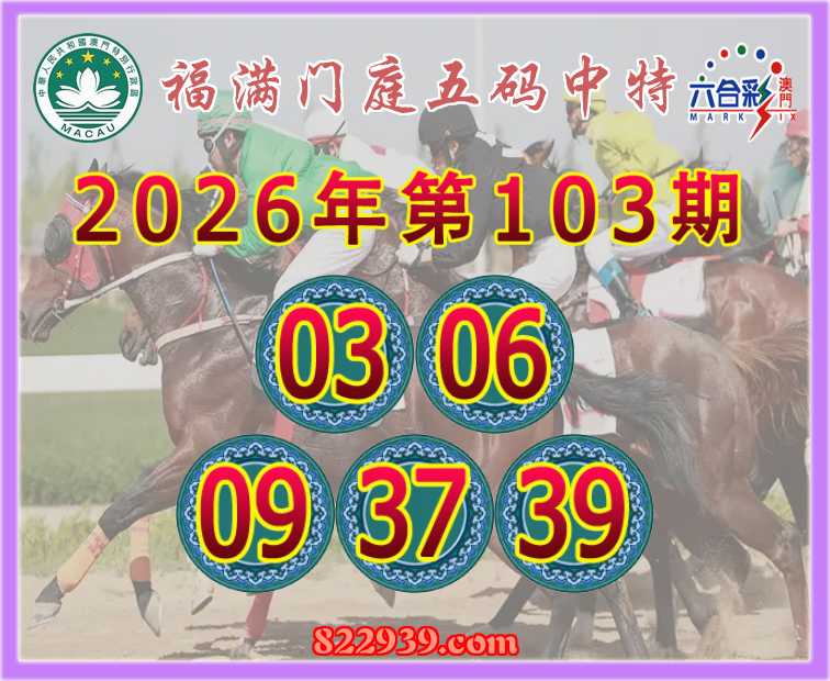 103期:【福满门庭】 🥧五码中特🥧【03.06.09.37.39】开:06