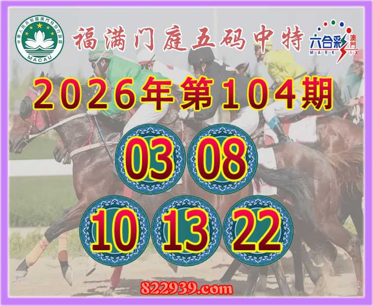104期:【福满门庭】 🥧五码中特🥧【03.08.10.13.22】开:01