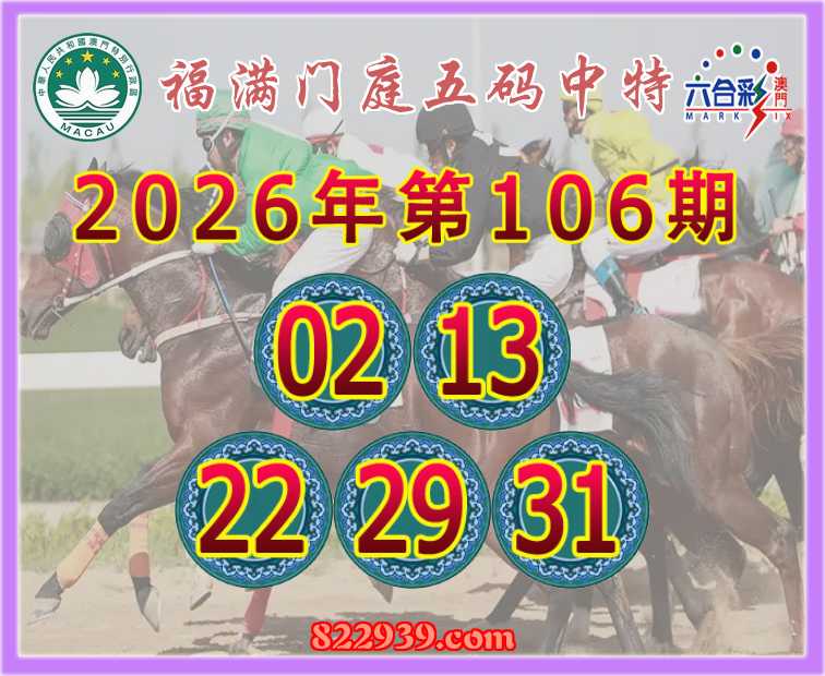 106期:【福满门庭】 🥧五码中特🥧【02.13.22.29.31】开:22