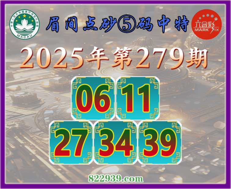 279期:《眉间点砂》 🍀⑤码中特🍀【06.11.27.34.39】开:27